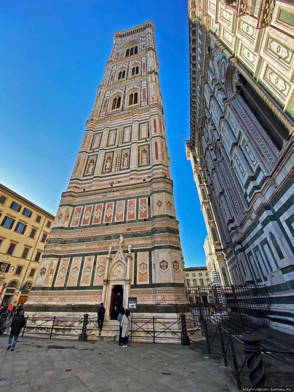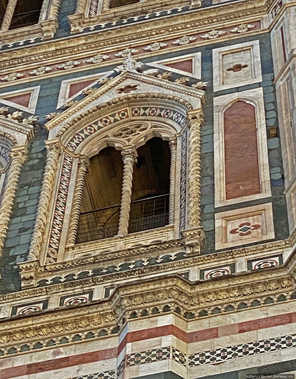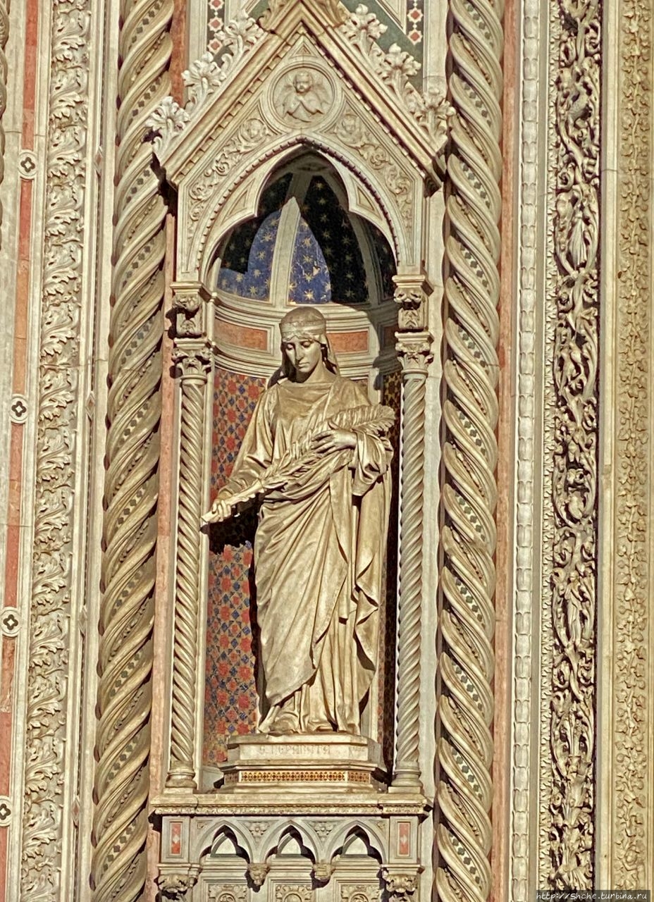 Авторами кампанилы были три мастера: Джотто, сделавший общий проект и закончивший первый ярус, Андреа Пизано, в 1340-х годах поставивший следующий ярус с высокими окнами-бифоре, и, наконец, Франческо Таленти, достроивший кампанилу и облицовавший её тремя типами мрамора. (ru.wikipedia.org/wiki/Кампани…)
