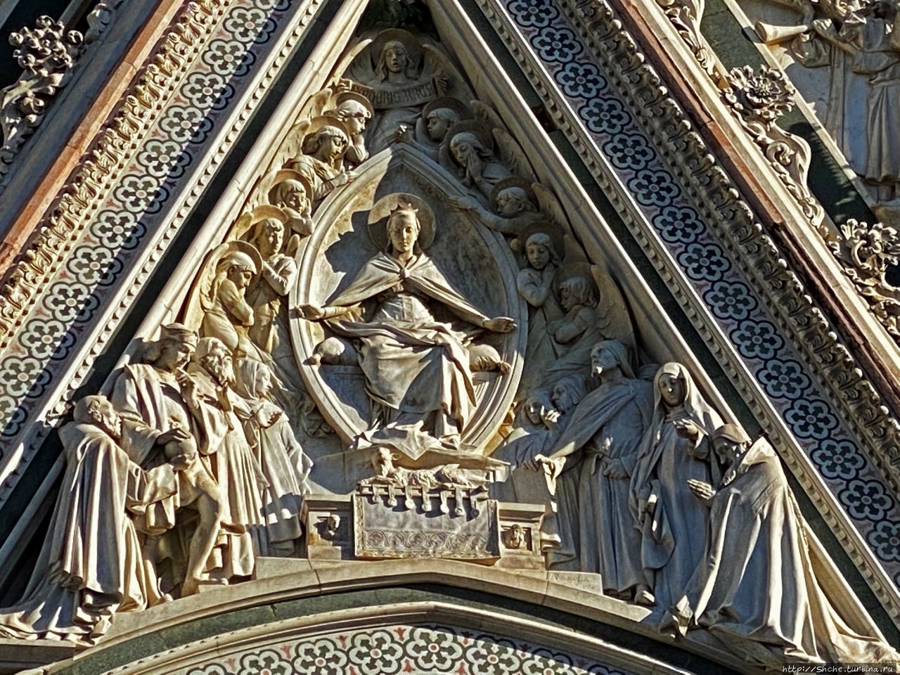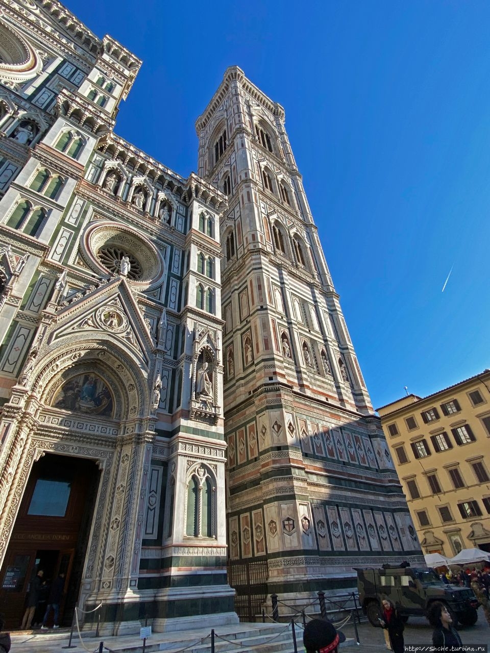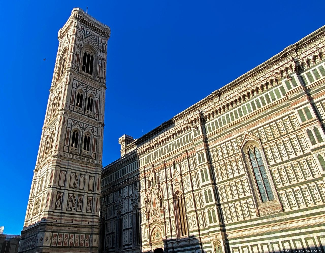 Авторами кампанилы были три мастера: Джотто, сделавший общий проект и закончивший первый ярус, Андреа Пизано, в 1340-х годах поставивший следующий ярус с высокими окнами-бифоре, и, наконец, Франческо Таленти, достроивший кампанилу и облицовавший её тремя типами мрамора. (ru.wikipedia.org/wiki/Кампани…)
