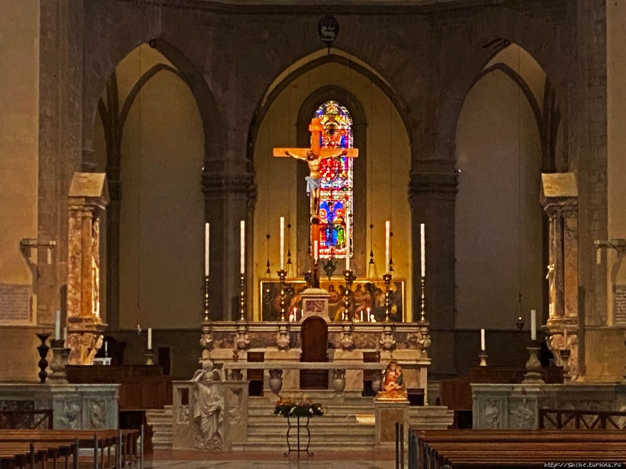 Потому алтарь и мозаику над ним пришлось снимать на максимальном приближении камеры...