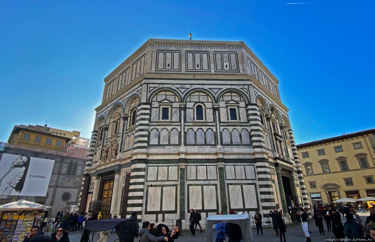 "Малахитовая" шкатулка Флоренции... ... посередине площади находится "шкатулочка" по меньше. Это Баптистерий Сан-Джованни — старый христианский храм, перестроенный и расширенный в 11-12 веках.