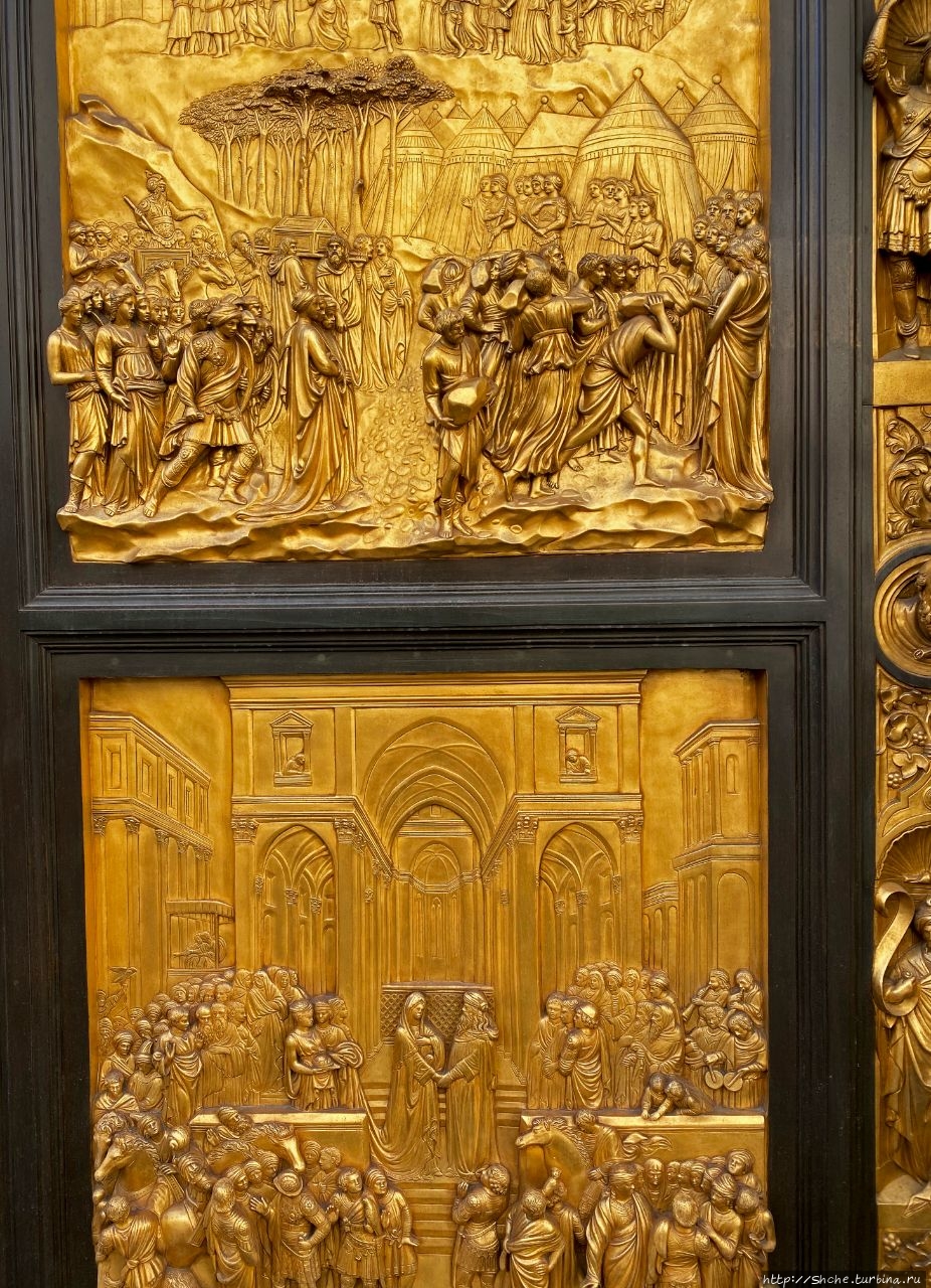 Они состоят из десяти позолоченных панелей без рам, на которых изображены сцены из Ветхого завета.