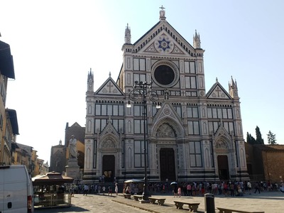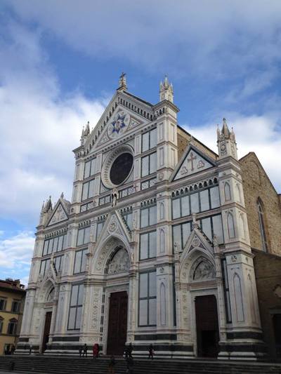 Католическая базилика Basilica di Santa Croce di Firenze была сооружена для монашеского ордена ''francescani'' в стиле ''gotico-rinascimentale'' по проекту архитектора Arnolfo di Cambio в период времени с 1294 года до 1385 год. Фасад базилики в современном виде был выполнен в период с 1853 до 1863 год.