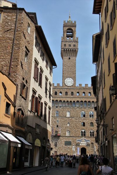 И вот мы добрались до Палаццо Веккьо, в настоящем городская ратуша. Перед входом в здание установлена знаменитая статуя Давида работы Микеланджело. Самая узнаваемая и копируемая статуя в мире. Конечно же сейчас тут стоит копия. Но около 400 лет вплоть до 1873 года тут стоял оригинал!