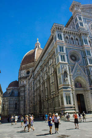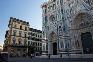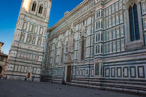 Сложно подбирать эпитеты, для описания совершенства. Санта-Мария-дель-Фьоре – великолепная доминанта Флоренции. Очаровательный Собор, который преследует вас по всему городу. Если, даже, парящий над крышами купол невиден, и не смотрит на вас темными глазницами окон, все равно вы чувствуете его, он все время где-то рядом. И действительно, он вдруг появляется, в своей праздничной терракотовой шапке в просвете узких улиц, и вновь исчезает.