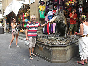 Сом свинье не товарищ, и посмотрев на собрата-близнеца знаменитого флорентийского кабанчика, я вспомнила, что тоже была у него и фотографировала, и фотографировалась. И хотела об этом написать. Но забыла.