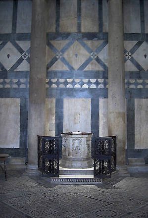 Сохранился Крестильный источник работы мастеров Пизанской школы XIV века, он расположен у стены.