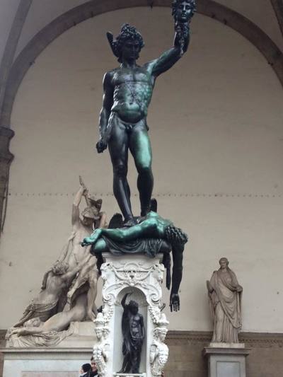 Исторический монумент ''Loggia della Signoria'' имеет так же названия: ''Loggia dei Lanzi'',''Loggia dei Priori'',''Loggia dell'Orcagna''. Расположена на piazza Signoria, построена в период с 1376 до 1382 год. У входа в лодджию слева находится бронзовая скульптура Perseo con la testa di Medusa, посередине два античных мраморных льва, справа скульптурная композиция Ratto delle Sabine, вдоль стены расположены скульптуры Ercole e il centauro, Patroclo e Menelao, Polissena di Pio Fedi, и шесть античных римских скульптур.