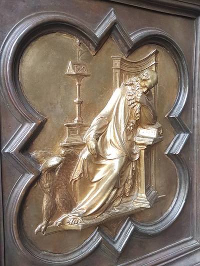 Battistero di San Giovanni, посвящённый святому покровителю Флоренции San Giovanni, расположен на площади piazza San Giovanni напротив Duomo Santa Maria del Fiore. Баптистерий San Giovanni построен в стиле ''romanico fiorentino'' в 12 веке.