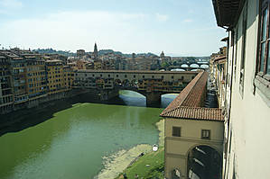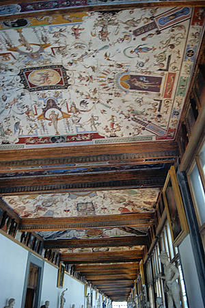 Дворец Уффици строился как часть единого комплекса, где жила семья герцогов Медичи, правителей Тосканы. Поэтому Вазари через пять лет после начала работ возвел «воздушный» коридор, соединяющий Уффици с палаццо Питти (новой резиденцией Медичи) и идущий поверх моста Понте Веккьо.