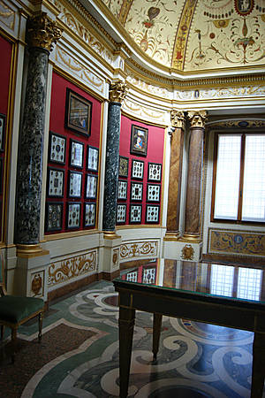 расположены залы с первого по двадцать четвертый, так называемый кабинет миниатюр, где находится 400 миниатюр – небольшого размера портреты различных эпох и школ, смонтированные в большие квадраты.