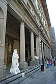 В середине XIX века ниши на фасаде Уффици были украшены мраморными статуями (скульпторы Дюпре и Бартолини), изображающими великих людей Флоренции: Козимо Медичи Старшего и его внука Лоренцо Великолепного, художников Джотто, Пизано, Леонардо да Винчи, Микеланджело, мореплавателя Америго Веспуччи.