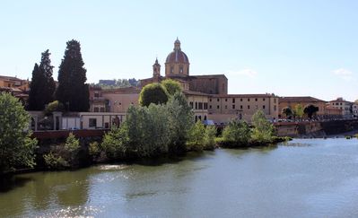 Флоренция занимает площадь около 103 кв2,вокруг холмов на берегу реки Арно. Флоренция находится в области с трёх сторон окруженной живописными равнинами. Покровителем города почитается Иоанн Креститель,празднование дня города 24 июня.