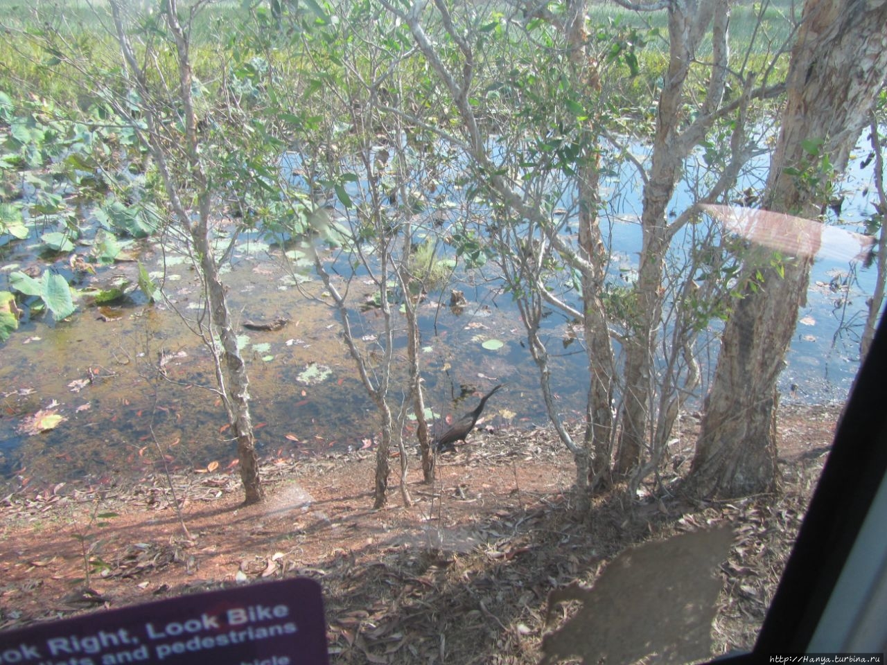 Туристов приветствуют огромные плакаты о запрете пешего передвижения в этих местах, особенно с детьми. Для устрашения схематично изображено, как крокодил с открытой пастью «нашу крошку в уголок уволок». Но не все так плохо, есть и оборудованные смотровые площадки, приподнятые над землей, с них можно любоваться дикой природой в ее первозданном виде.