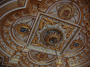 Стены и потолки залов украшены росписью и лепниной
