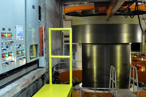 А это - сама турбина. На этаже стоит жуткий гул, и работники должны в обязательном порядке надевать наушники.