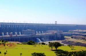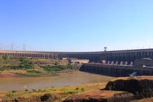 Итайпу — плотина общей длиной 7235 м, шириной 400 м и высотой 196 м. на реке Парана на границе Бразилии и Парагвая в 20 км от г. Фос-ду-Игуасу. На основе плотины построена ГЭС Итайпу – крупнейшая в западном полушарии и занимающая 2-е место в мире по вырабатываемой электрической мощности 14ГВт. Для сравнения наши сибирские ГЭС имеют мощность около 6ГВт, а волжские — 2ГВт.