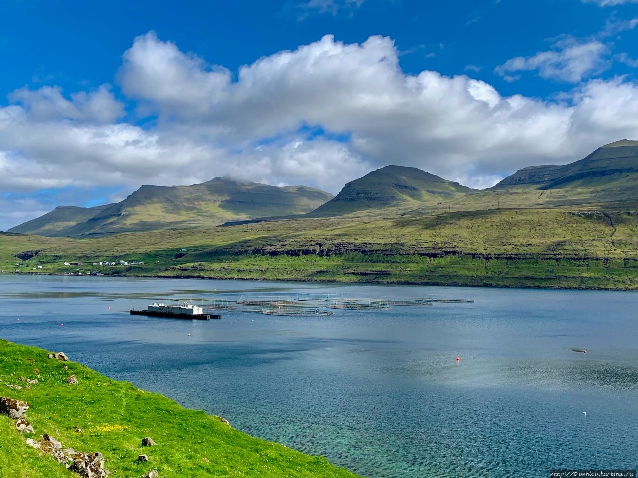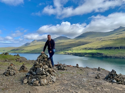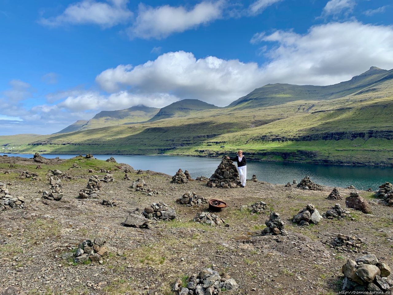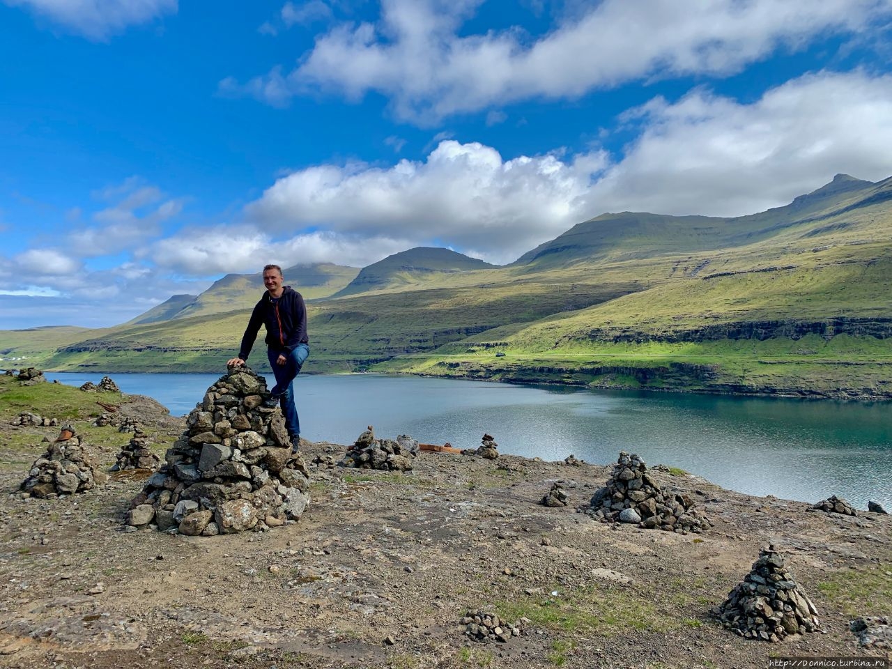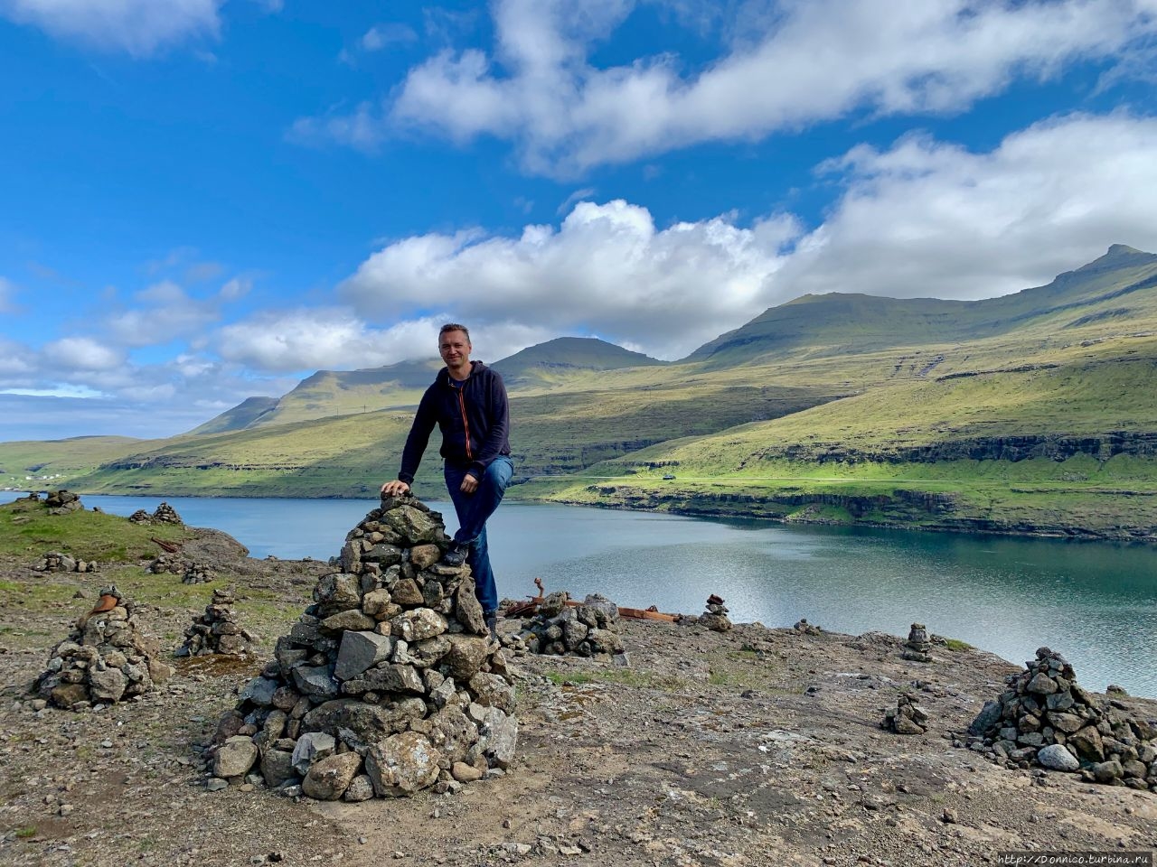 Или же сам на короткое время стал тором, забравшись на эту башню, чтобы сфотографироваться и как можно лучше рассмотреть вид на узкий и длинный пролив, а также на возвышающийся над ним туманный остров Эстурой. С этой фотографии идеально видна география этого пролива Сундини, разделяющего 2 самых крупных острова Фарерского архипелага.
