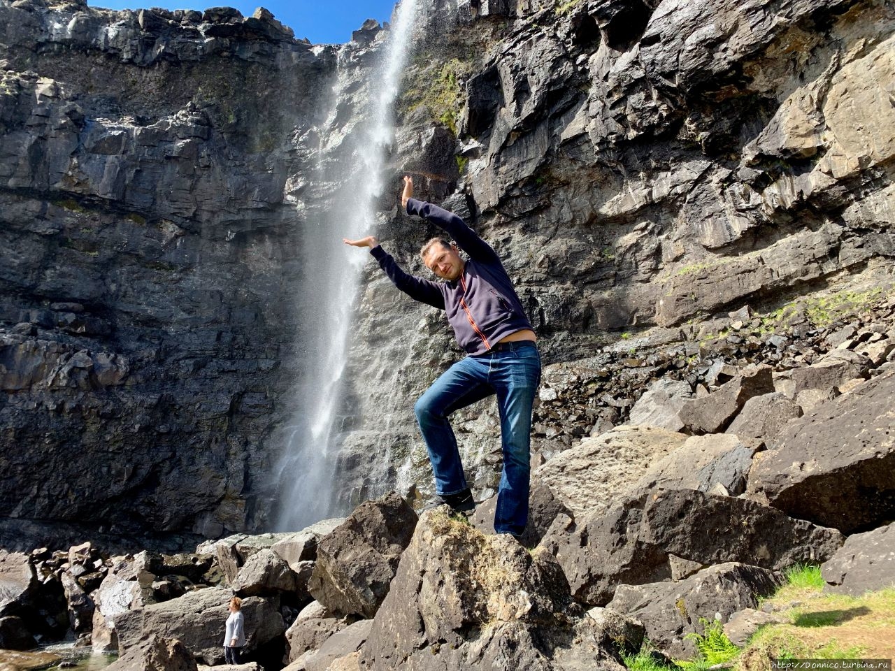 На следующей остановке недалеко отсюда, нам обещали водопад Фосса. Меня это привело в некоторый умственный тупик, что безусловно хорошо, так как заставляет задуматься. Дело в том, что фосса на языке викингов означает водопад, поэтому писать водопад фосса это какое-то масло масляное, выходит оксюморон. Либо же это просто Водопад с большой буквы. Поэтому останавливаем наш минивен и идем знакомиться.
