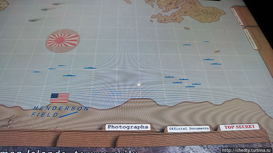 Полугодовую годовщину Перл Харбора Нимиц отметил тризной у атолла Мидвей утопив четыре японских авианосца. Причем по всем формальным параметрам японский флот на тот момент существенно превосходил американский. Более того японцы до поры до времени думали, что это они выследили и вот вот отправят ко дну жалкие остатки американского флота. В музее показано почему этого не случилось и как Нимиц неожиданным маневром поймал великого японского адмирала Ямамото.