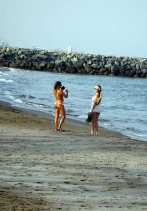 У многих девушек существует забавная традиция — в конце пляжного отдыха устраивать себе фотосъемку на берегу, как бы запечатлеть на фото и свежесть, и загар.
