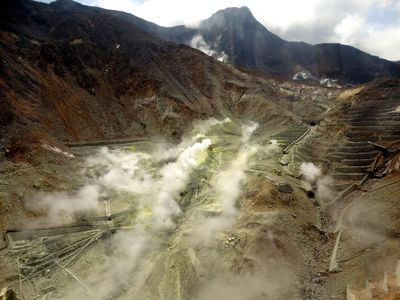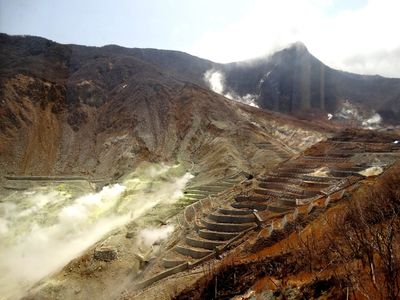 На подъемнике можно подняться до долины Овакудани, ( "великий ад") района вулканической активности.Вулкан Хаконе извергался последний раз 3000 лет назад, породил озеро и оставил о себе память — до сих пор в горах курятся молодые вулканы.