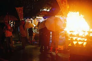 После спуска с Фудзи паломники отправлялись в онсены. Большинство туристов отправляется на автобусе обратно в Токио, кое-кто остается в Фудзийосида, чтобы не нарушать традицию паломников — отдохнуть в горячем источнике. Остался и я, чтобы попасть на праздник огней, которым закрывается сезон — Химацури.