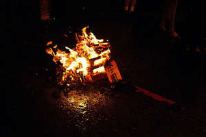 Горящий огонь, поливающий плотным потоком с неба ливень, холод капель, жар углей, запахи жаренной кукурузы и куриных шашлычков, улыбающиеся люди, выныривающие из тьмы на свет всполохов костров — все это действовало на органы чувств, позволяя радоваться празднику другой страны.