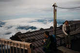После остановки на последней станции еще нужно пройти по внешней кромке кратера, чтобы добраться до зубца на котором расположена метеостанция и который является самой высокой точкой Японии. Еще на вершине есть почтовое отделение. В этот день оно было уже закрыто. Я рассчитывал отправить открытки в последний день его работы, но последний день сезона был «вчера», а «сегодня» сезон восхождений будет закрыт. Ну и конечно же на вершине есть небольшой храм.