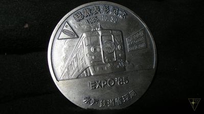 Надпись на медали: «Памяти успешного завершения всемирной научной выставки в г. Цукуба. Управление железнодорожной станции Суйко»