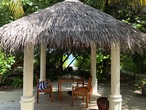 Не знаю как те, которые сформировали мою «мальдивскую классическую картинку», но на нашем курорте домики из кораллового «бетона».