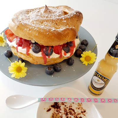 Bизитная карточка повара — это гигантские заварные пирожные! Я таких еще не встречала, диаметр их около 20 сантиметров, наполнены они ягодным кремом розового цвета... но я его поздно увидела. После пива и тыквенного супа, сами понимаете. Придется ехать туда еще раз.