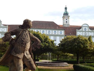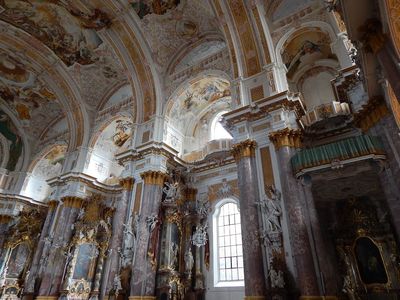 Ее строительство началось в 1690-м году под руководством мюнхенского придворного архитектора Джованни Антонио Вискарди. Строительство заняло около 10 лет, а внутренняя отделка растянулась почти 50 лет. Фрески создал Косма Дамиан Азам, его старший брат Егид Кверин Азам создал центральный алтарь, скульптуры и лепка работы Петро и Якопо Аппиани.