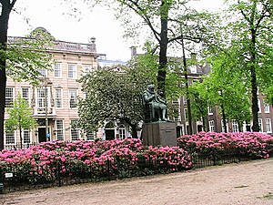 Это две яркие отличительные особенности города, с которыми связаны некоторые проходящие в городе интересные события. О спортивности. Расположена Гаага у Северного моря и, имея два великолепных пляжа на его берегу, является центром различных спортивных мероприятий: праздников и соревнований. Побережье Северного моря в пригороде Гааги весьма живописно и, не смотря на нежаркий голландский климат, является популярным морским курортом. В июле-августе здесь 21, а температура не прогревается выше 18 градусов, некоторых это не смущает; а многих так и вовсе притягивает: в канун Нового года они традиционно приезжают сюда на праздник любителей моржевания. Велосипедисты в Гааге тоже есть, равно как и мотоциклисты, и красные велосипедные дорожки предусмотрительно оформлены, но не в таком сумасшедшем количестве как в Амстердаме. Чаще по улицам люди ездят на машинах- ибо улицы достаточно широкие, а также ходят в галстуках и костюмах- здесь много серьезных организаций. Это уже деловая Гаага. В Гааге живет и работает король Нидерландов и в городе можно увидеть не один королевский дворец, принадлежащий правящему семейству. А также саму коронованную особу и членов его семьи- на ежегодном празднике Королевы 30 апреля. Очень хочется на него попасть. Также в Гааге заседают Парламент, суды и другие организации. В самом центре города перед Королевским прудом находится дворцовый комплекс Бинненхоф- здесь заседает Парламент- здания в абсолютно голландском стиле, которым не одна сотня лет. А за дворцом- современные стеклянные высотки, столь симпатичные мне и к радости увиденные здесь. Разумеется, есть и памятники- королю и королеве, музеи, рестораны, клубы тоже есть