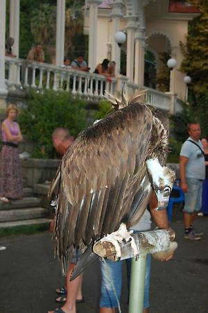Между центральным входом и причалом, невдалеке от причала, если идти по крайней левой (ближней к шоссе) дорожке находился еще один опорный пункт "любителей животных". Сидели , подремывая в жаре дневного марева, павлин и мартышка. Шоком стало для меня, когда один из владельцев животных окликнул проходящих туристов и предложил сфотографироваться с медведем. Я проходил мимо того места и даже не заметил ничего. Потому ,что медведь был грязный и практически не отличался от земли на которой он лежал.