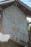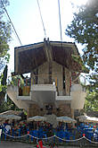 Внизу здания находится кафе , в котором даже работает небольшой фонтанчик и постоянно шебуршится местный отдыхающий люд.И только когда забрался на верхотуру и увидел тросы,