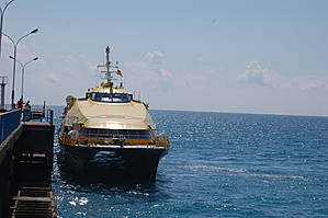 Насколько мне известно возле Гагры сменился не один пирс. С пирса хорошо видна Гагра, от него и к нему приходят кораблики для перевозки людей и организации экскурсий.По железным лестницам можно спуститься к воде и любоваться морем.