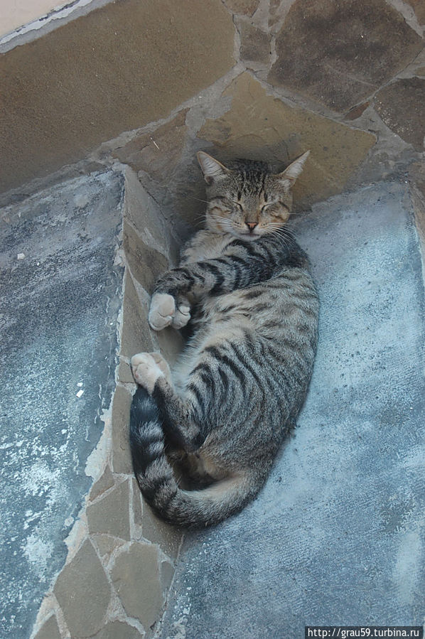 Хоть и расположена Гагра возле моря, но в жаркий день приходится тяжело и людям , и животным. Но животным сложнее со своей шерстью, вот и спят такие коты, где попрохладнее.