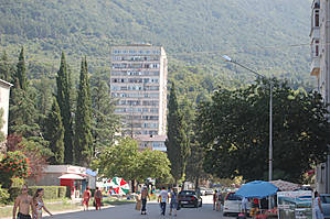 Есть у меня привычка — просто прогуляться по незнакомому городу, на людей и достопримечательности посмотреть, пофографировать. Решил я из Новой Гагры от базара дойти до своего пансионата в Старой Гагре. Самое интересное — ошибся в расчётах минут на 30. Единственно жарковато было на улицах, но я прошёл весь путь и заодно несколько десятков снимков сделал.