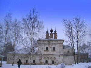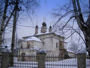 Обойдя забор с чугунной решеткой, походили вокруг чистого глубокого снега, ведущих к храму следов не заметили и так до конца и не поняли, действует ли храм. А его, кстати, называют «самой ранней сохранившейся в Галиче постройкой».