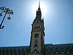 Конечно, у старинного Гамбурга была когда-то соответствующая старинная ратуша, только ей сильно не повезло в 1844 году, во время грандиозного пожара. А вот потом случилось так, что местные власти в течение почти четырёх десятилетий не могли собраться на строительство нового здания: то кризис выдастся, то политические неурядицы, то ещё что-нибудь. Лишь ближе к концу XIX века проекту был дан "зелёный свет", и уж тогда известный зодчий Мартин Халлер сотоварищи постарался создать нечто замечательное. И такое замечательное ему создать удалось, хотя если бы он больше налегал на декоративное оформление, мне кажется, ратуша только выиграла бы в живописности...