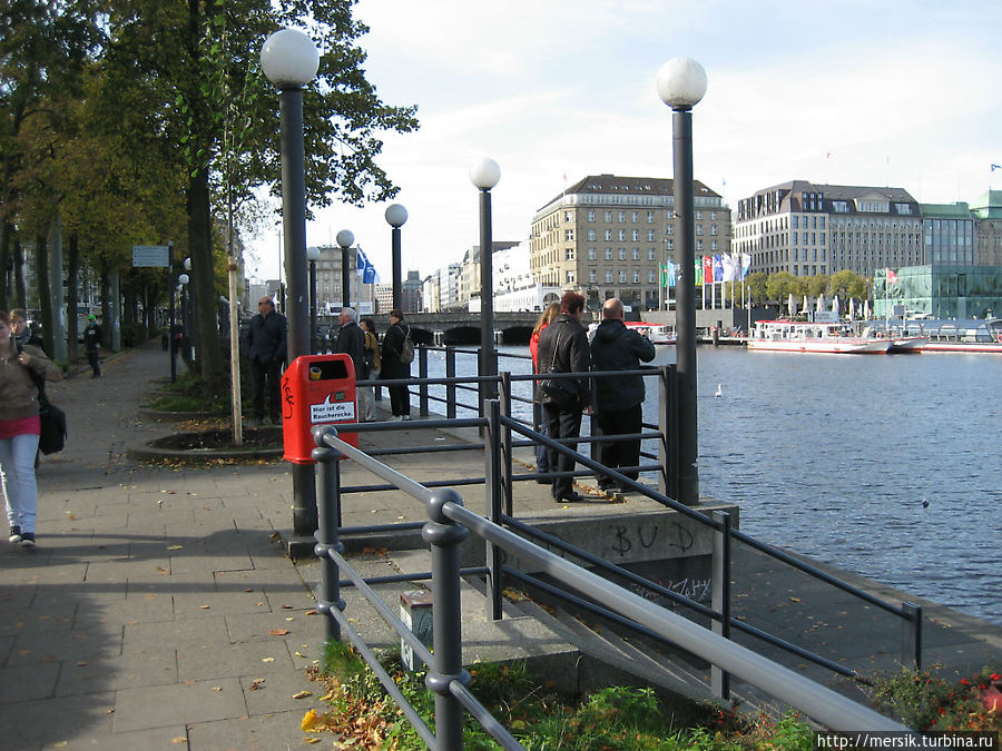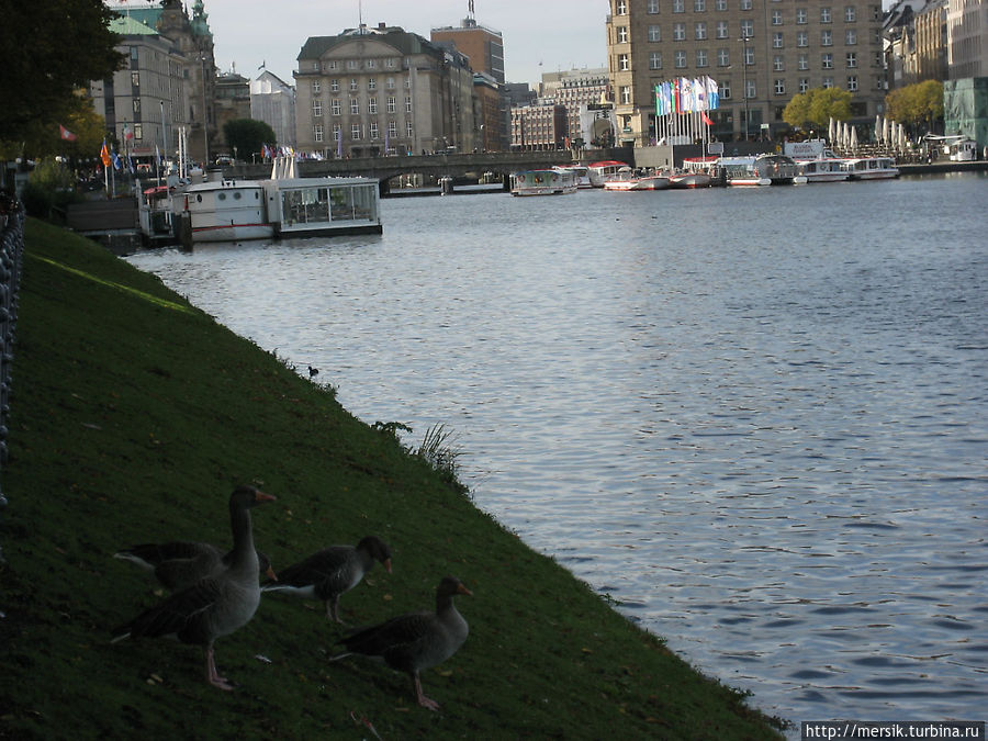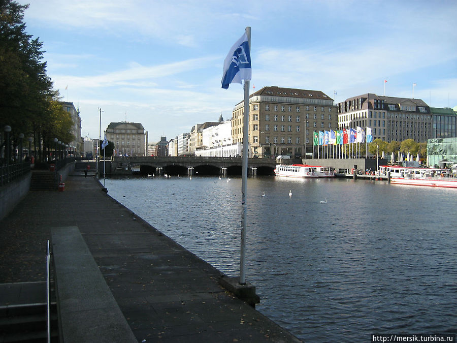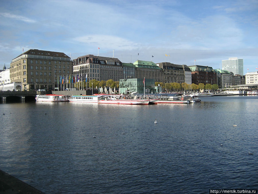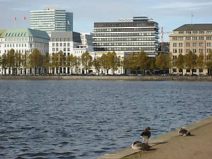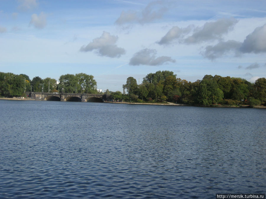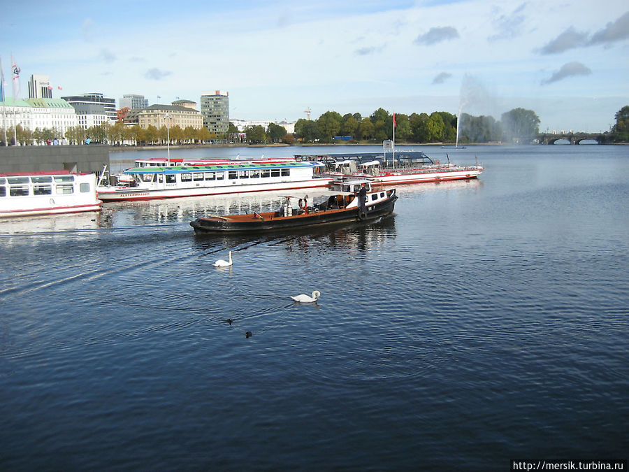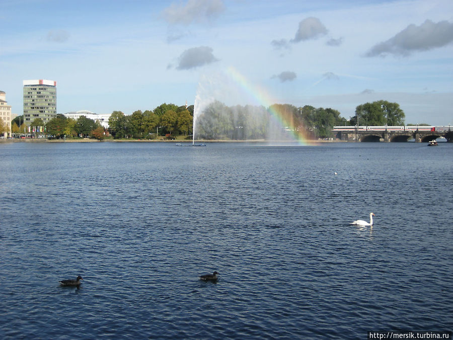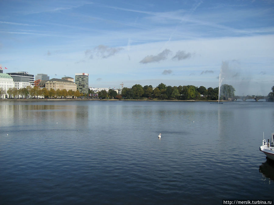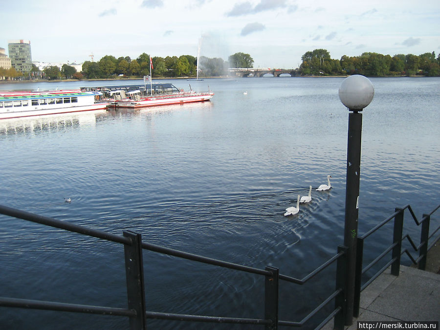 Река Альстер разливается в черте города и образует два озера: внутренний и внешний Альстер. Прогуливаясь вдоль озера не устаешь любоваться и бесконечно фотографировать эти великолепные незабываемые пейзажи. Сказочна хороша и панорама города на фоне внутреннего озера Альстер с бьющим из воды фонтаном и стайками белоснежных лебедей.