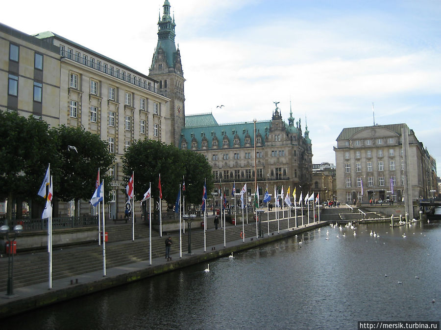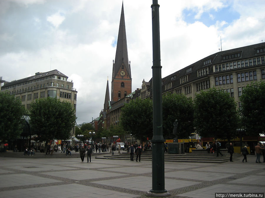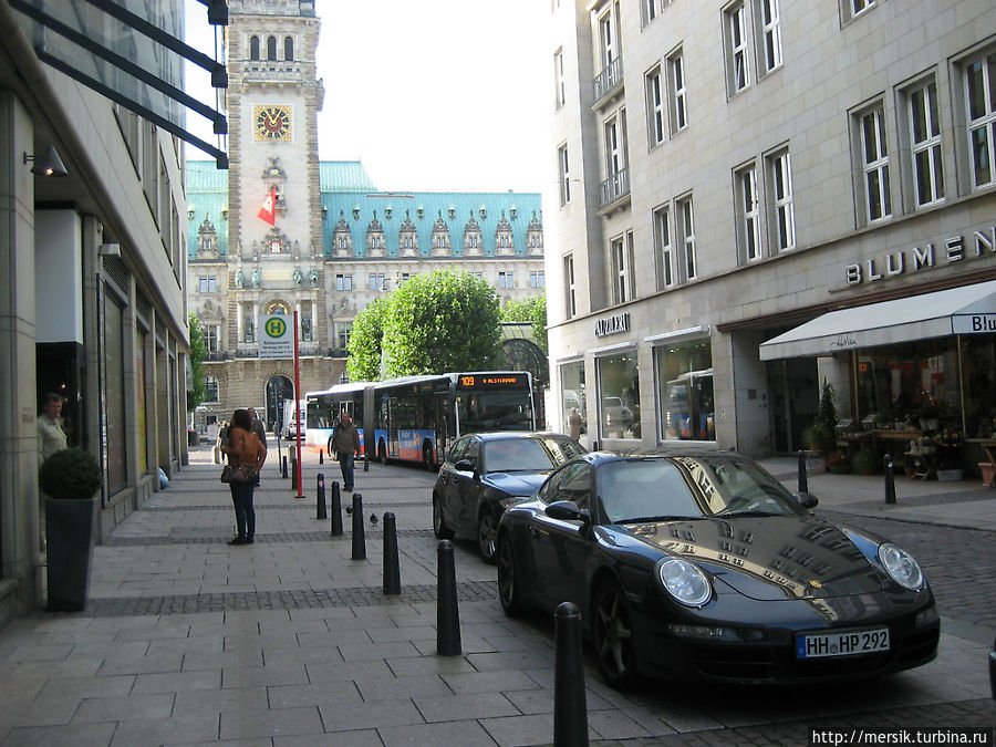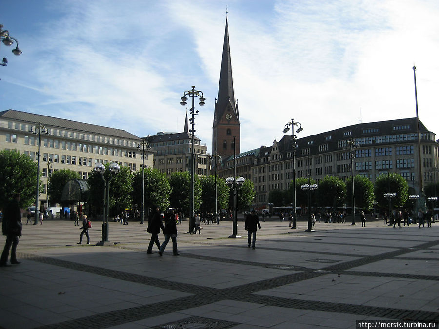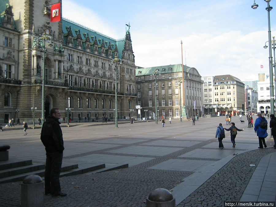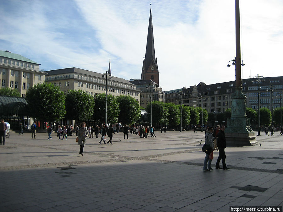 Ратушная площадь- одна из главных достопримечательностей сама по себе- также является местом начала различных туристических маршрутов: улица Фердинандштрассе вдоль внутреннего приведет к внешнему озеру Альстер, Людвигштрассе- к центру ночной жизни улице Репербан, а железная дорога- к порту. Здесь же на Ратушной площади стоит печальный памятник Генриху Гейне. Изобразить поэта, грустно опустившим голову и закутанным в плащ, было очень верным решением. Ведь Гейне, обожавшего Германию, не принимали в Гамбурге- шумном городе торговли и разврата, а все попытки семьи превратить поэта в актуального для Гамбурга хорошего "продавца" либо бухгалтера окончились провалом.