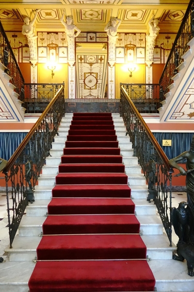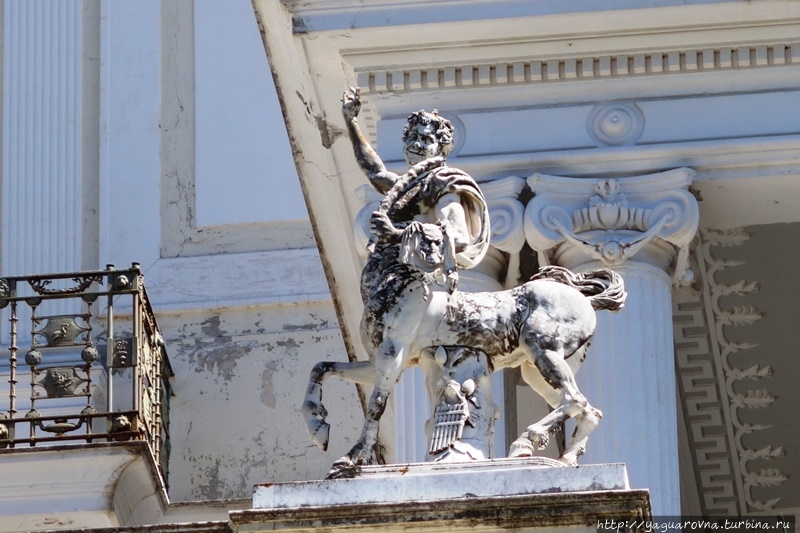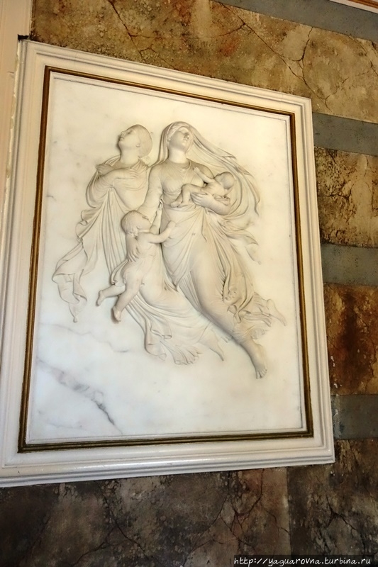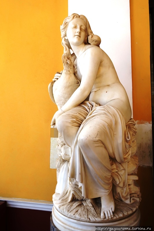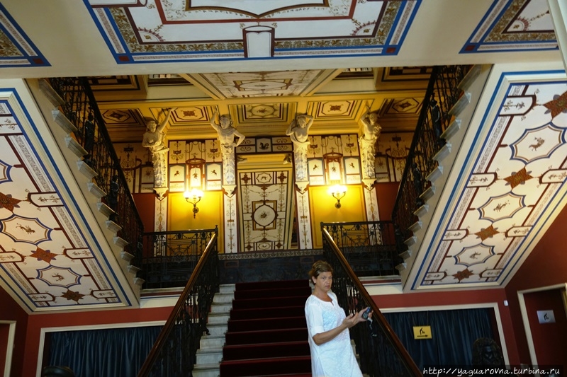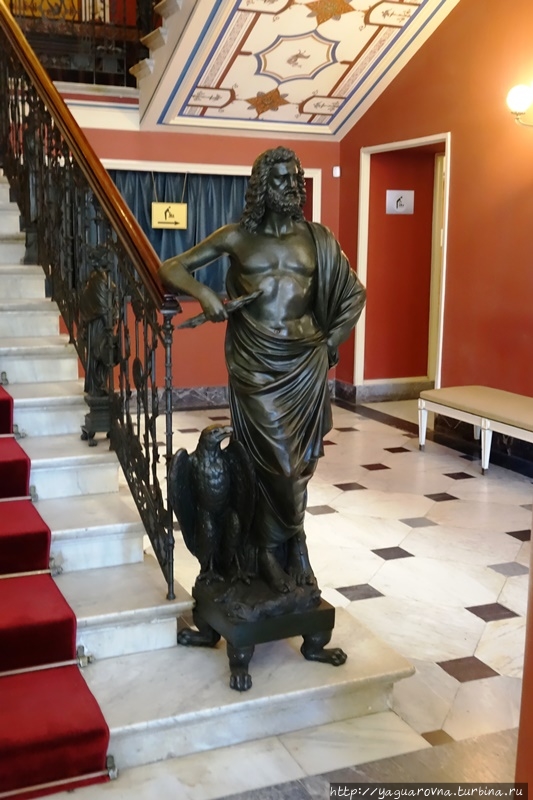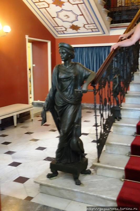 Если внешне здание может показаться простым и скромным, то внутри сомнений не возникает — это дворец. И начинается он с парадной лестницы. . На первом этаже у перилл по обе стороны от ступенек фигуры древнегреческих богов Геры и Зевса. .