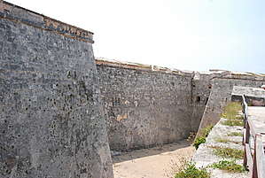 Она состоит из трех бастионов, соединенных двумя куртинами — стенами приспособленными для стрельбы с разных уровней.