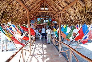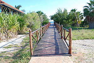 Начну с самого начала. Дело в том, что на Кубе все пляжи считаются общие, в том числе на Варадеро, где и местных-то нет, а одни туристы. От нашего отеля на пляж непосредственно шла дорога через мостик, деревянный такой, с бегающими по нему ящерками-дракончиками.