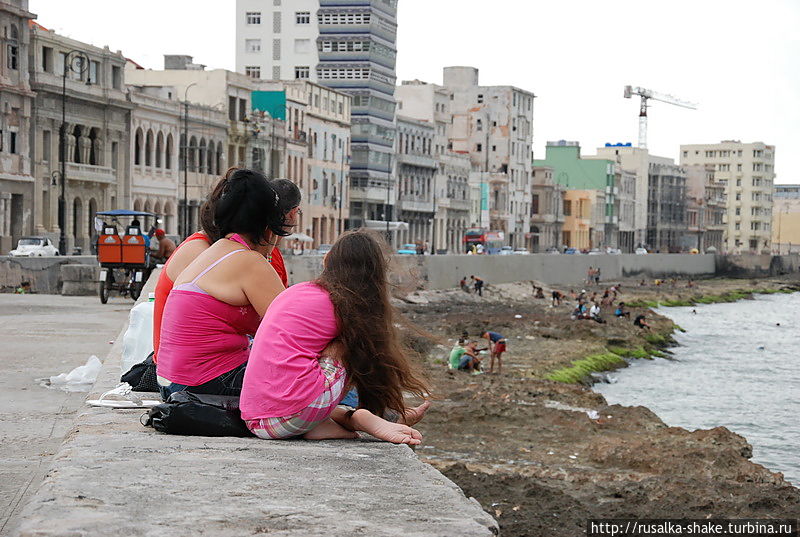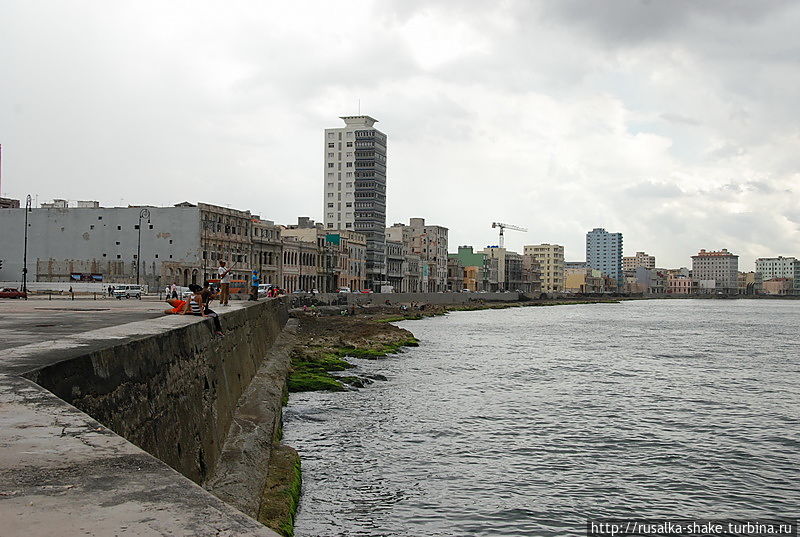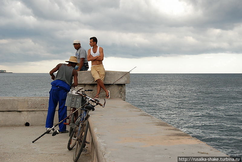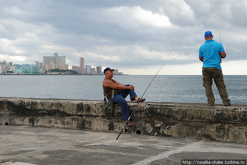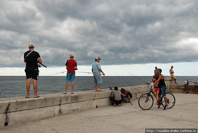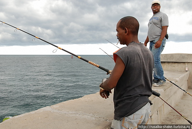 Вплоть до самой Старой Гаваны рыбаки стоят и ловят рыбу.Приходят целыми семьями порой. Это не удивительно. На Кубе нельзя ловить креветок и лобстеров, можно только купить, но на «купить» денег не хватает, поэтому местные выкручиваются, как могут. На Кубе, вообще, много чего нельзя местным. Например, забивать корову на мясо, (их кубинцам разрешено держать только ради молока, бесплатного больным и детям до семи лет). А если собьешь корову на дороге, то получишь 30 лет тюрьмы. В общем, есть что-то нужно, поэтому в Гаване, как и в Стамбуле на Галатском мосту, стоят и ловят рыбу мужики, только цели, ради чего ловят, у тех и других разные.