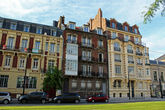Очень заметно, что архитектор не пытался восстановить исторический облик города, застраивая бульвар новыми домами в своем стиле. Но при этом он не разрушил то, что осталось после бомбардировок, а вписал "новое" в отреставрированное "старое"...