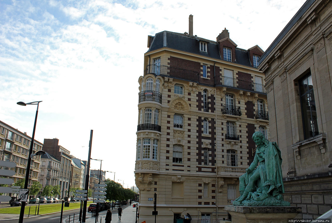 Я знал, что Гавр был практически полностью разрушен во время Второй Мировой войны, а за его разумное восстановление был признан Всемирным наследием ЮНЕСКО. При восстановлении архитектор Огюст Перре удачно вписал новаторские технологии градостроительства в сохранившийся контур старого города. Как раз это хорошо видно на нашем бульваре, далее мы увидим, что ведь центр города практически отстроен заново...