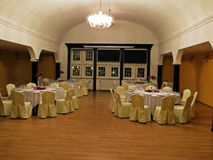 Плюс терраса, летом открытая, с видом на реку Мотлава. Здесь же накрывают завтрак