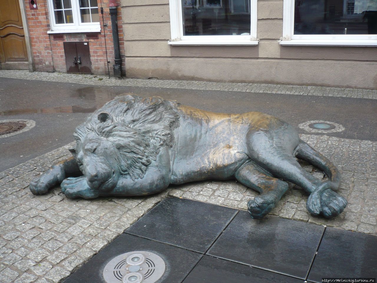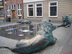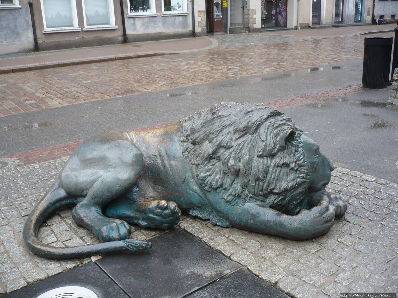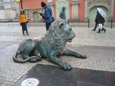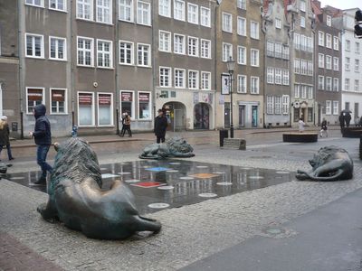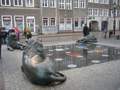 Имеет форму квадрата, поделенного на 4 части. В углу каждого квадрата лежит лев – символ Гданьска.